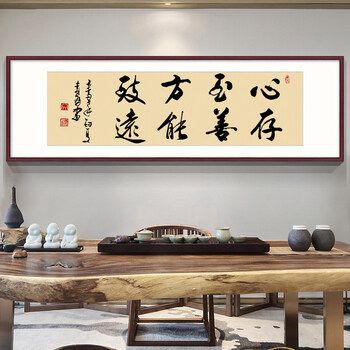 手写真迹客厅字画办公室茶室装饰挂画框书法作品竖幅条幅卷轴装裱