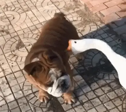 狗狗和鹅大战三百回合,狗咬鹅脖的瞬间,汪:晚上吃鹅肉?