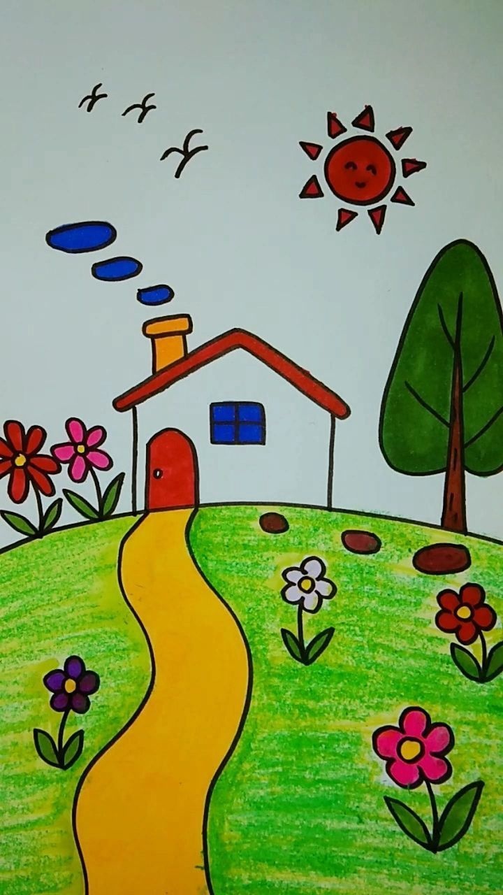 亲子卡通简笔画学画漂亮的山水风景画简单好画