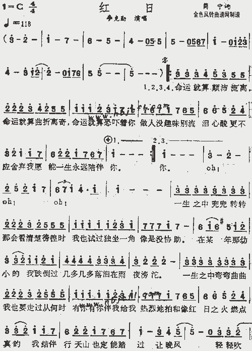 《红日》_歌谱简谱_歌词简介_曲谱资料