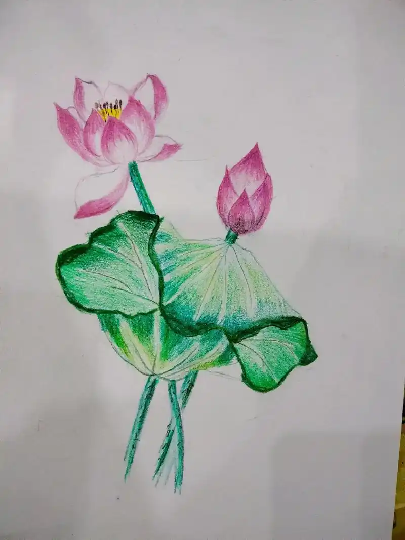 高新学校美术学习——荷(彩铅画)