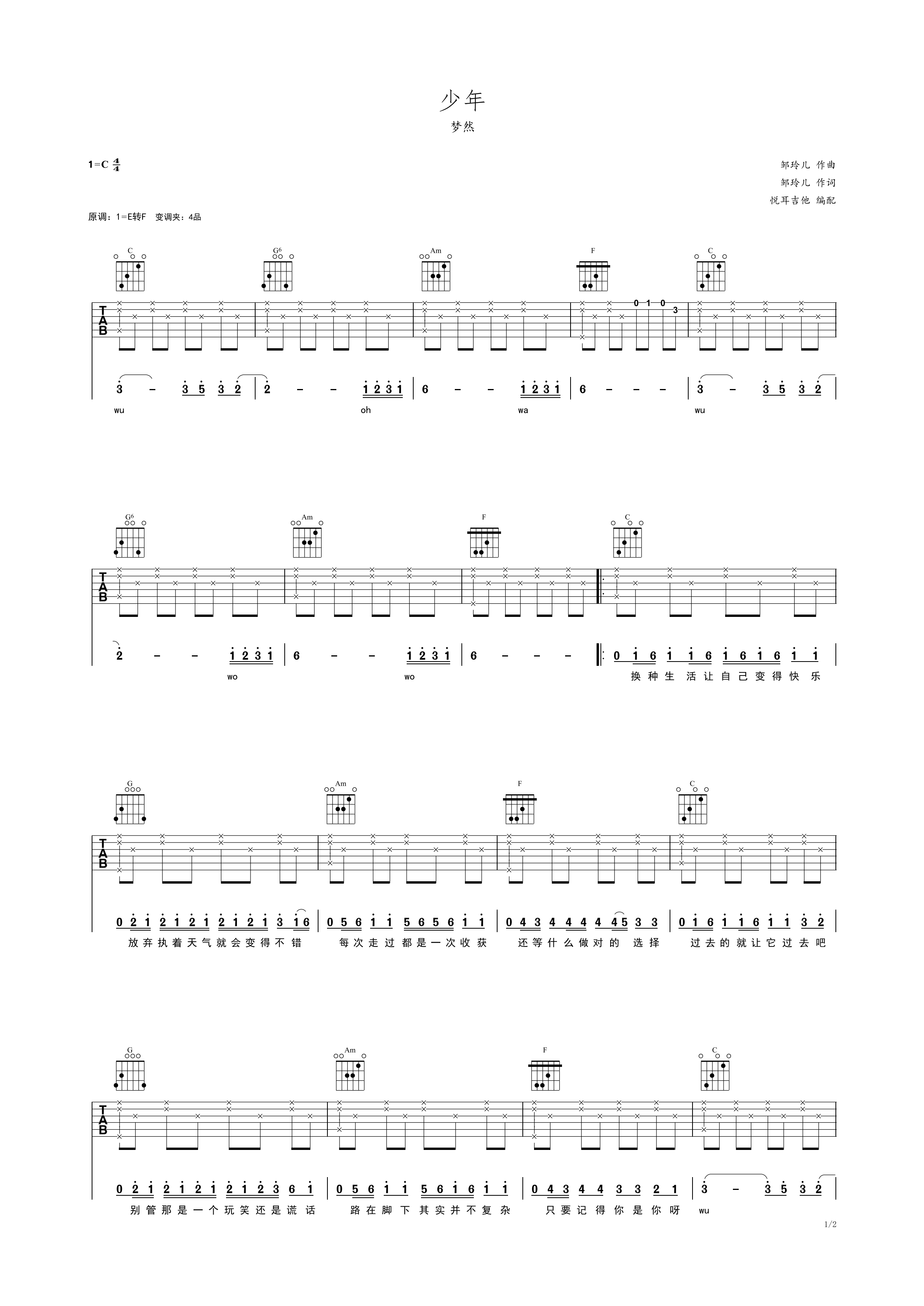 吉他谱 第1页