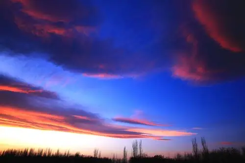 宁夏银川天空的火烧云,漫天绚烂,色彩斑斓.