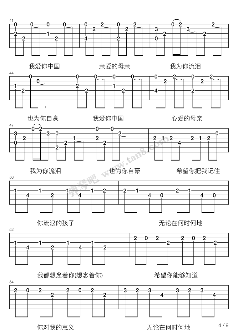 吉他谱 - 我爱你中国