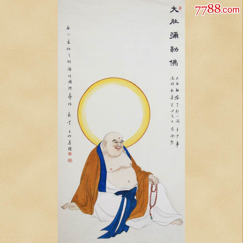 弥勒佛笑佛像画像佛教挂画皆大欢喜国画卷轴画丝绸画佛教挂画新品