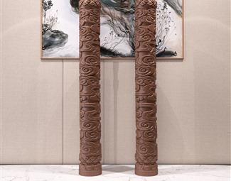 仿古祥云展示柱茶室玄关装饰新中式落地庭院拴马桩客厅复古大摆件