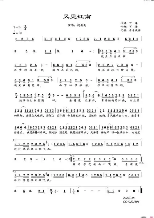 又见江南简谱-魏新雨演唱-可泽/可泽词曲1