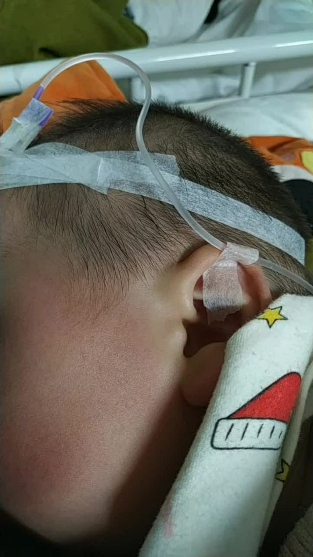 宝宝生病住院中.