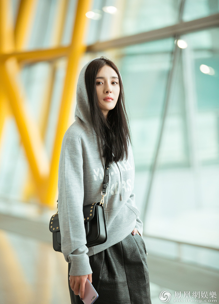 杨幂机场时尚秀,秋日暖阳下的穿搭艺术 杨幂在机场的街拍中展示了她