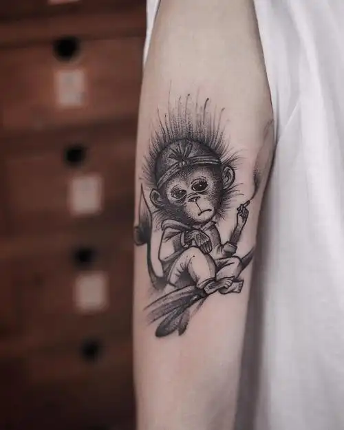 愤怒的猴子纹身图片_成品手臂传统宗教纹身图案