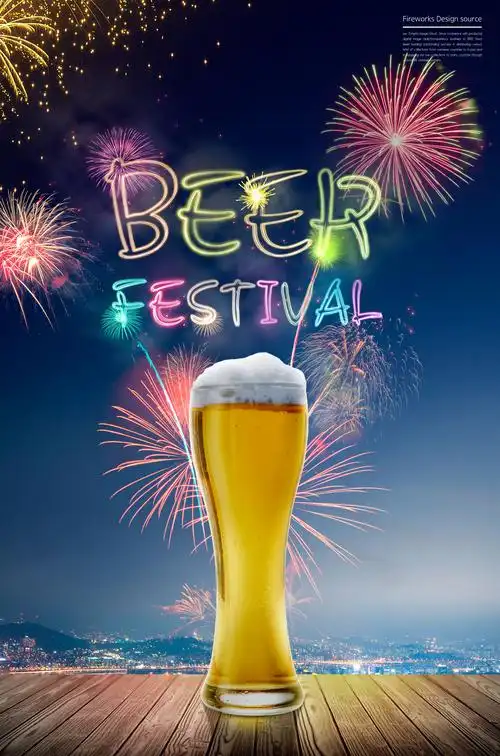 啤酒节狂欢活动烟花背景海报psd素材