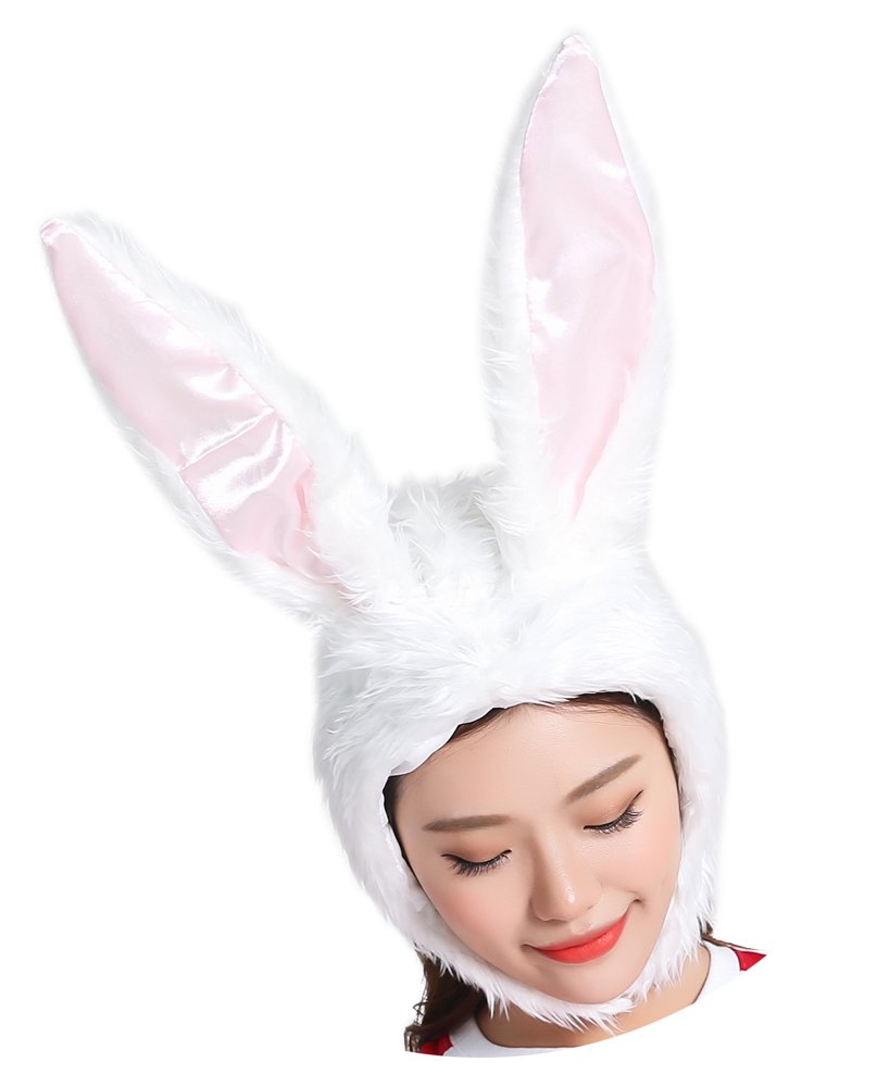 adjoy 女童毛绒兔子帽子 - 万圣节角色扮演兔子动物派对帽,内有线框
