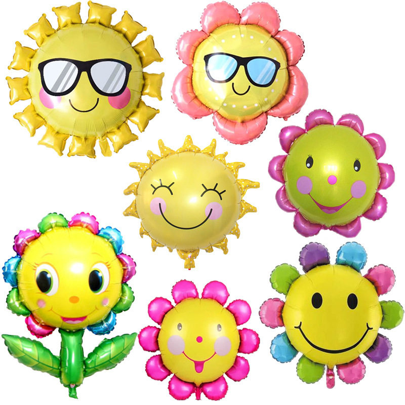 儿童生日布置太阳花金太阳笑脸向日葵铝膜气球宝宝生日卡通球