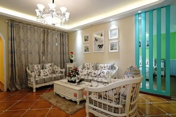 韩式田园风格客厅沙发背景墙装修图片装修效果图