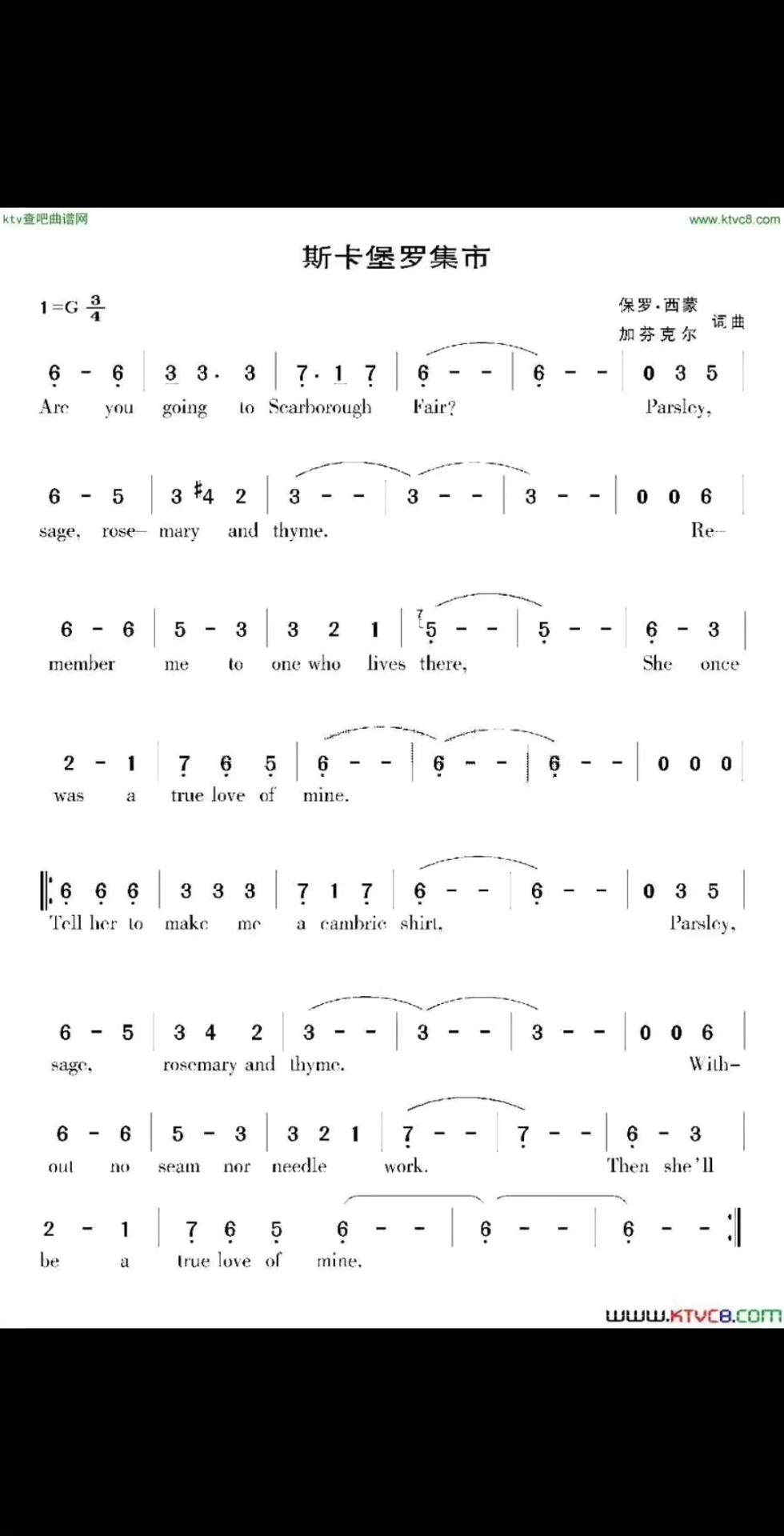 【蔓萝音乐】 简谱--《斯卡布罗集市》