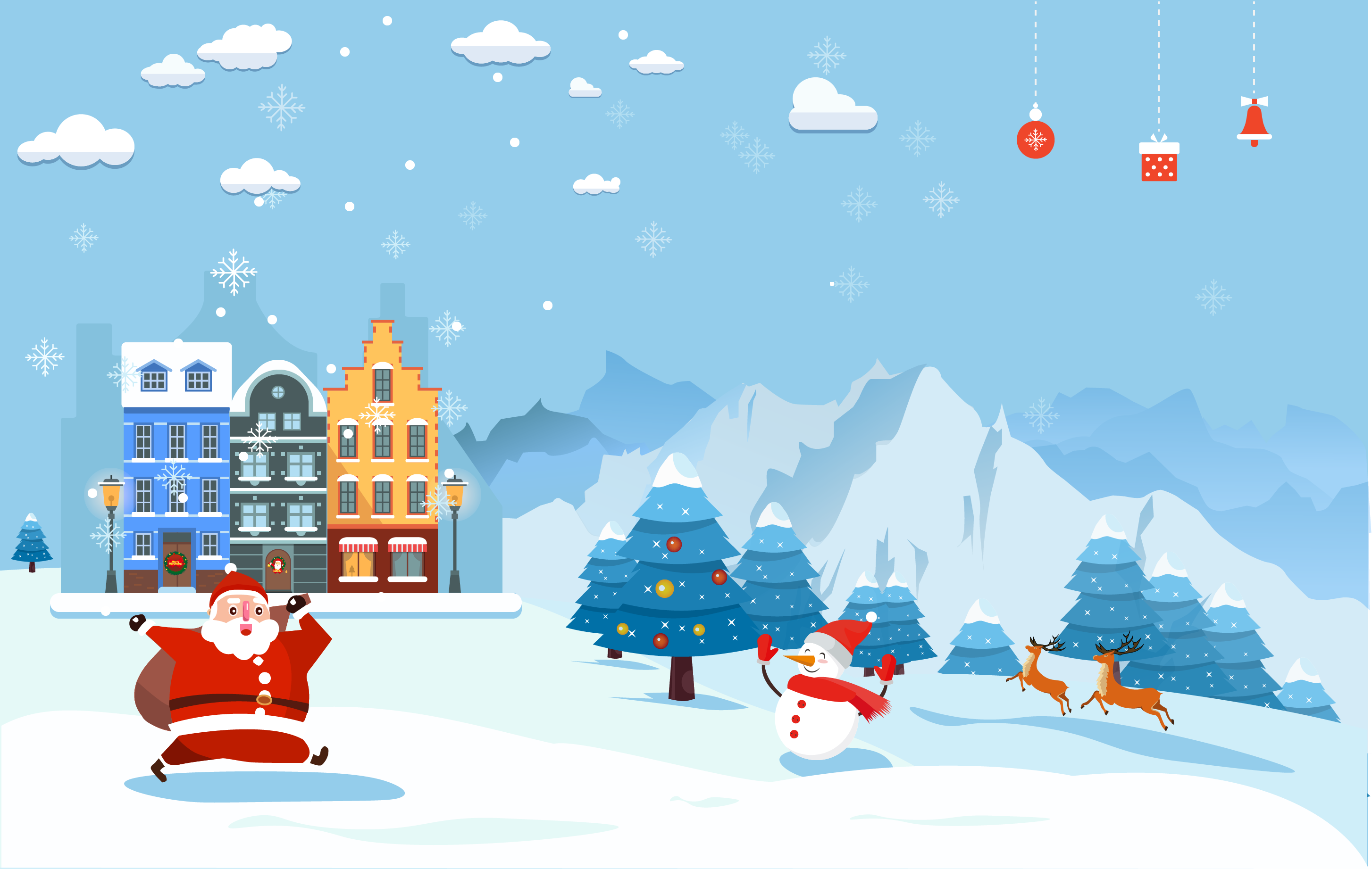 冬天背景雪人冬天场景插画卡通插画堆雪人高清
