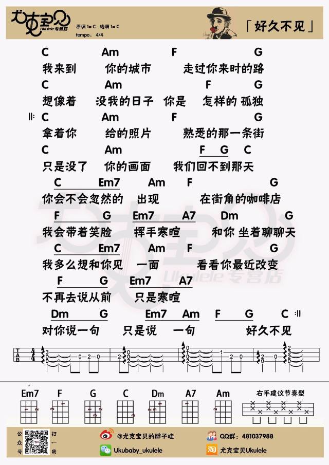 好久不见尤克里里弹唱谱标准谱