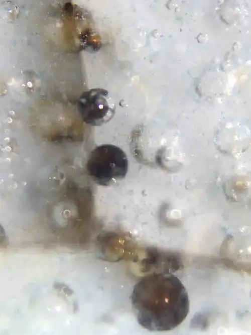 此件汝瓷在一百倍微观下老化痕迹明显.
