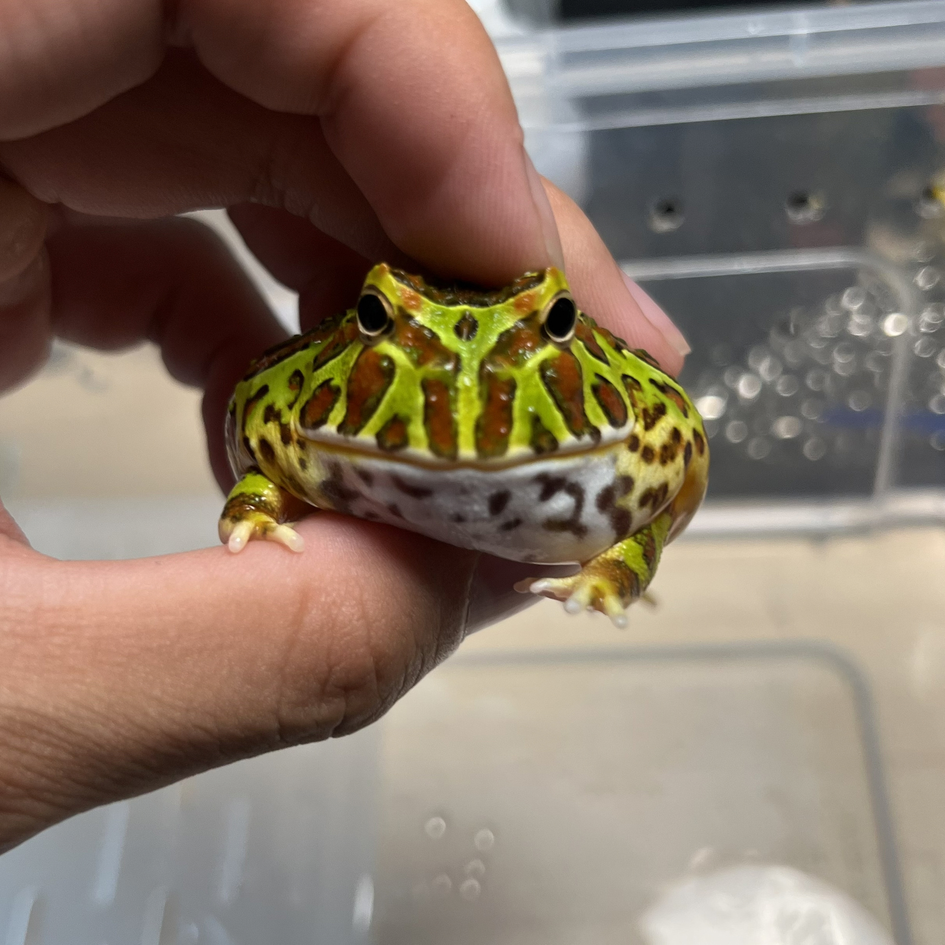 【角蛙纪录】大薄荷绿角蛙暴力食鱼(喂食饲料鱼)