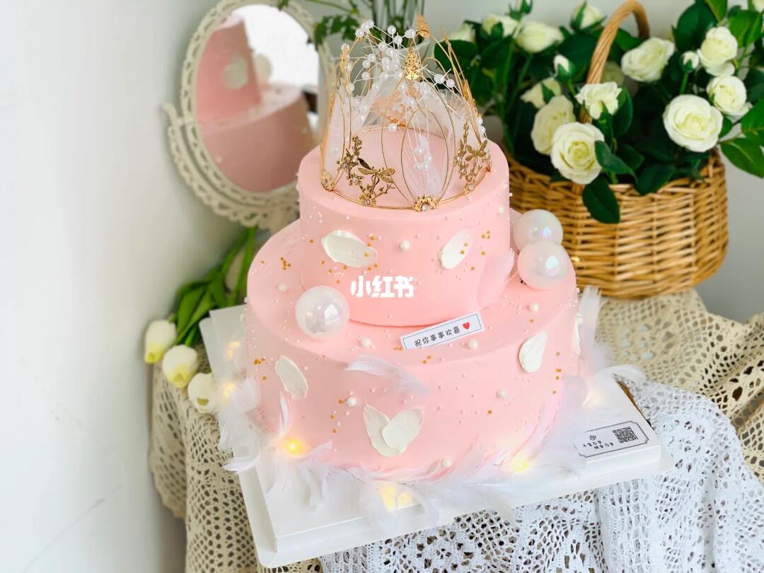 皇冠蛋糕羽毛蛋糕粉色蛋糕