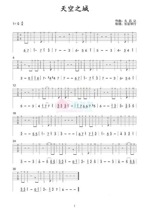 久石让天空之城吉他谱