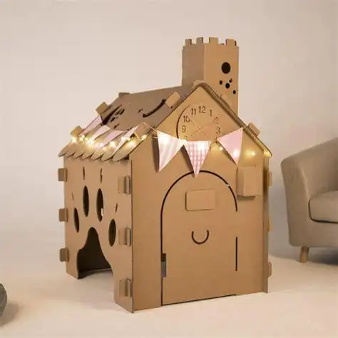 diy手工纸板小房子儿童diy纸板别墅房子纸模型手工制作纸箱拼装子玩具