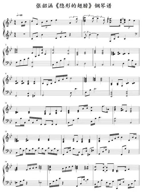 张韶涵隐形的翅膀钢琴谱