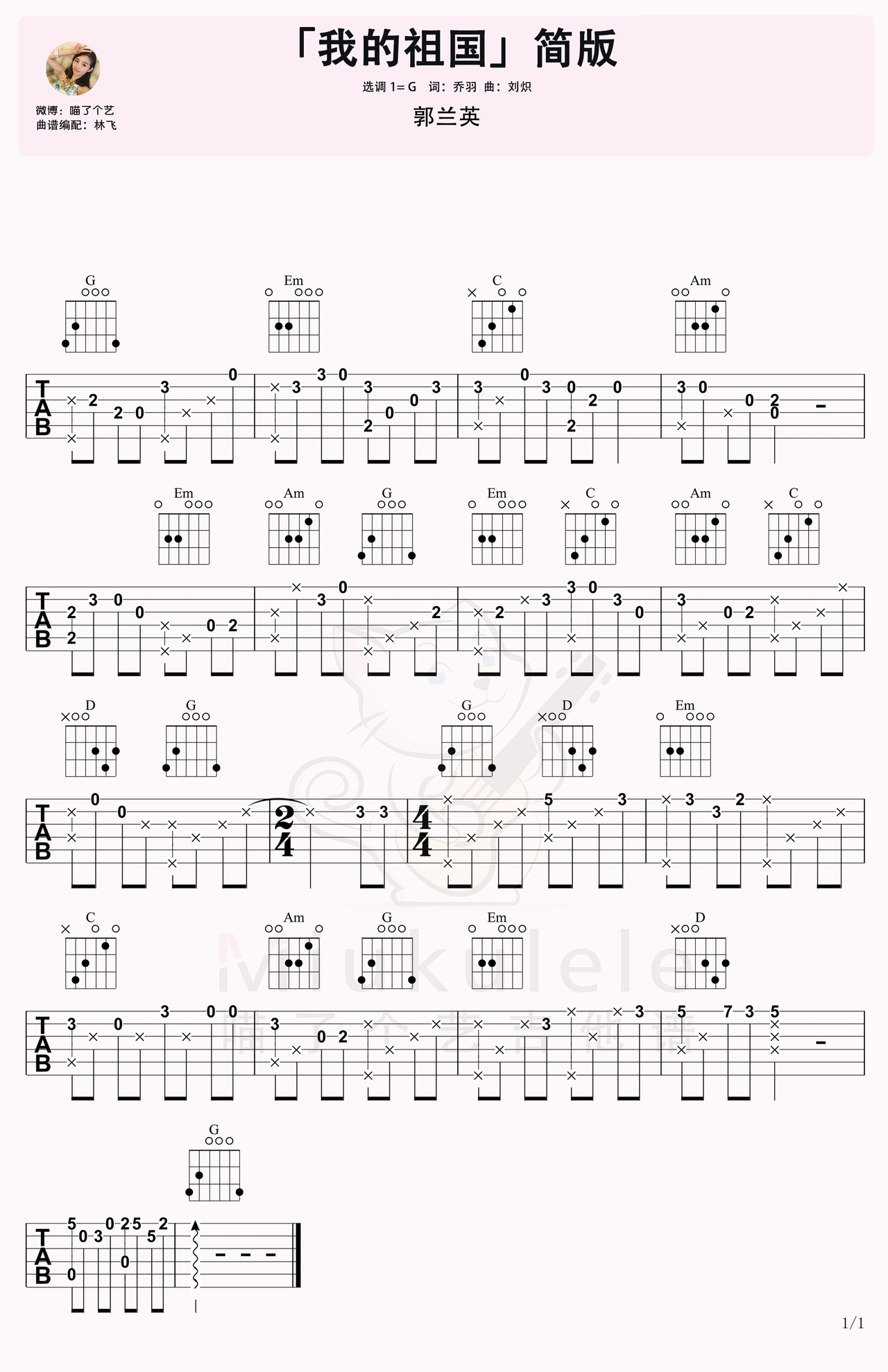 我的祖国吉他谱_郭兰英_c调弹唱简单80%单曲版 - 吉他世界