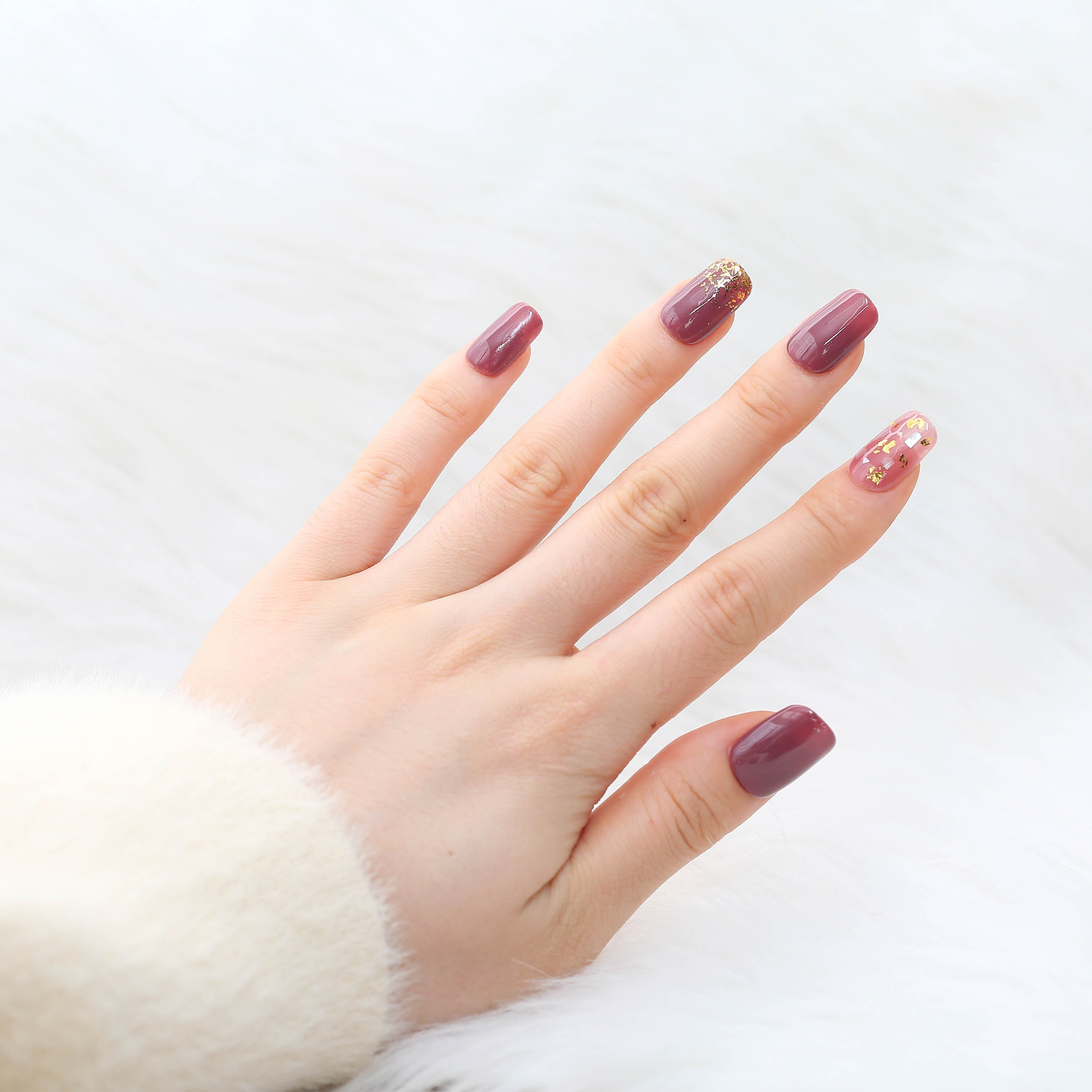 2021新款式清透显白红调晕染美甲
