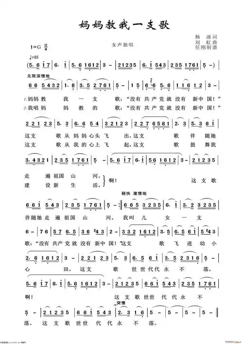 妈妈教我一首歌(怀旧红歌100首) 歌谱简谱网