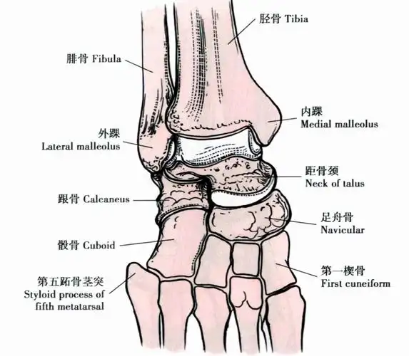 限制距骨后移;★冠状面:外踝较内踝低1cm左右;踝关节的骨性结构由胫骨