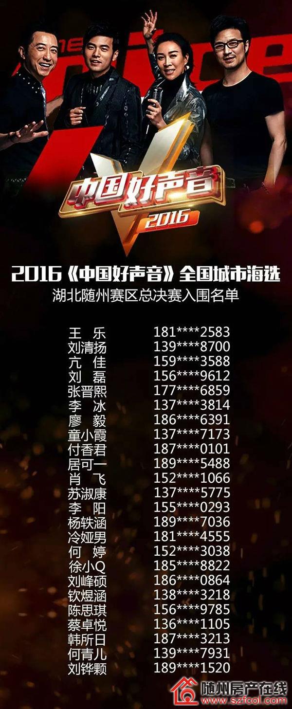 2016《中国好声音》城市海选湖北随州赛区入围总决赛名单