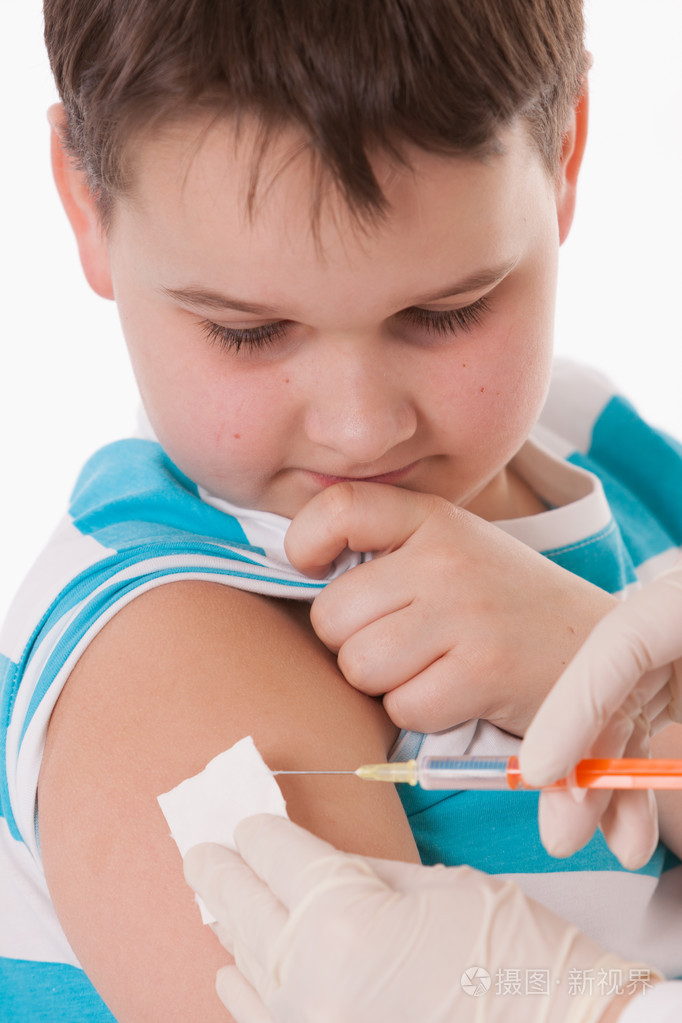 医生在给孩子注射在手臂上孤立图像