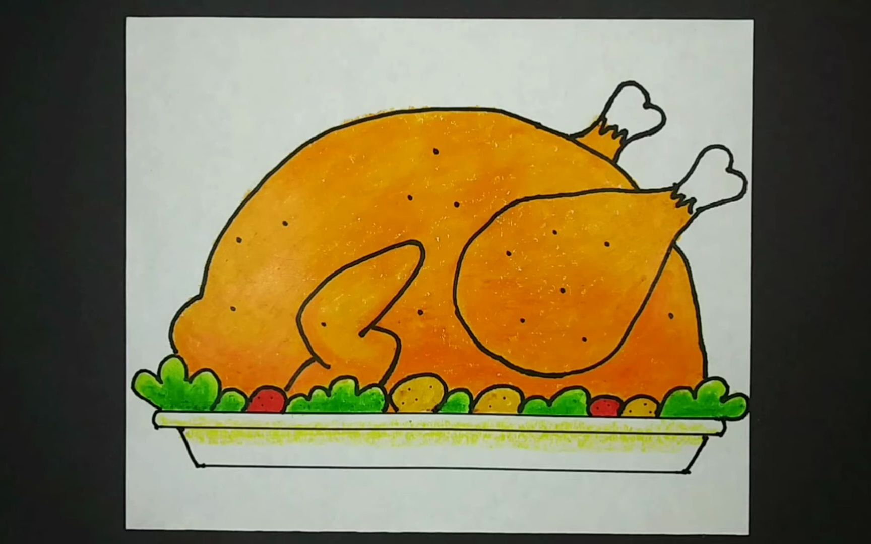 儿童简笔画 - 感恩节的火鸡大餐 每天一幅简笔画22 painting and colo