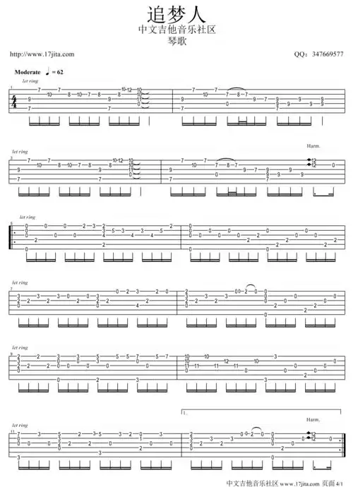 追梦人(指弹) 吉他谱 - 第1张