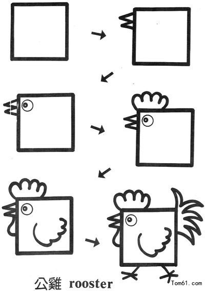 儿童创意简笔画用一个正方形画出小鸡