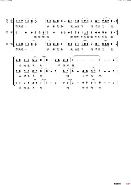 春风十万里小合唱简谱1