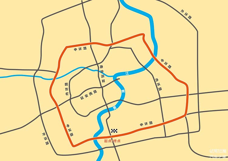 红色线路为上海中环快速路