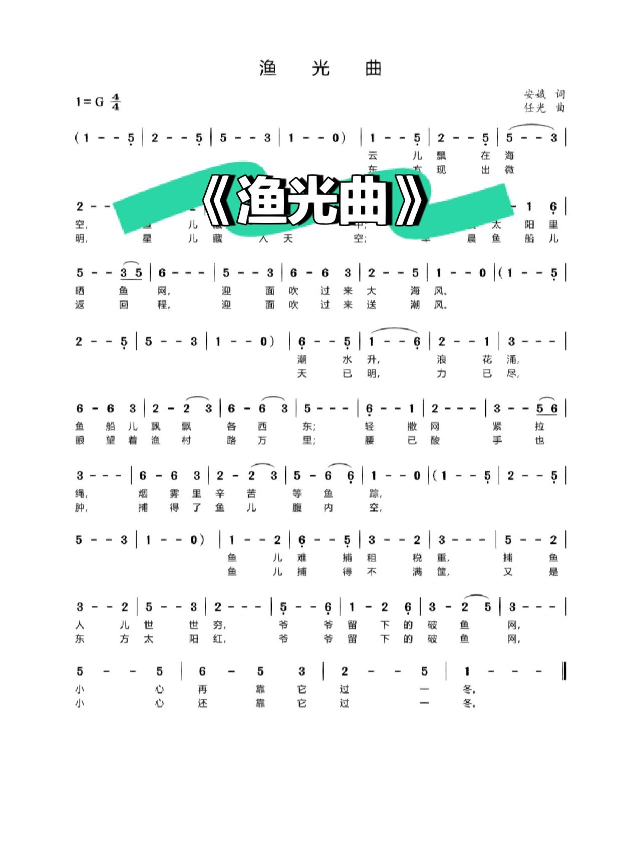 渔光曲 #简谱 #识谱 #有谱歌曲 #一起学音乐 - 抖音
