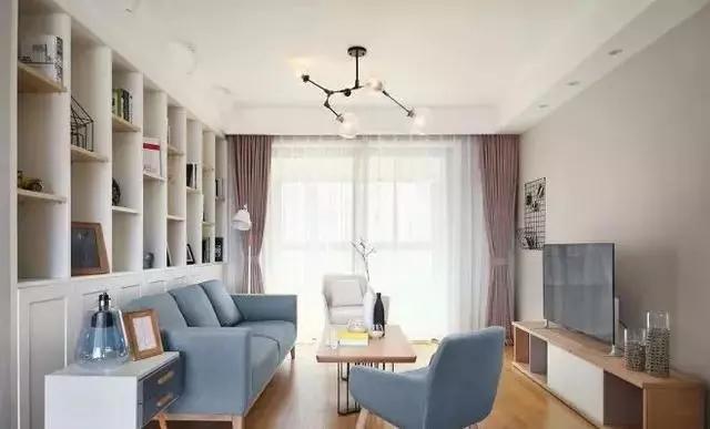 简约北欧风三居室,客厅沙发背景墙做成一整排收纳柜,真实用!