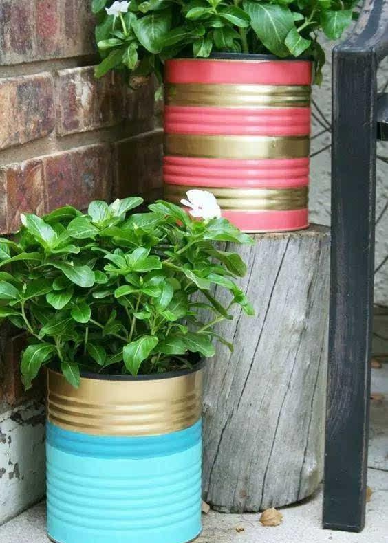 漂亮的花盆是奶粉罐变的