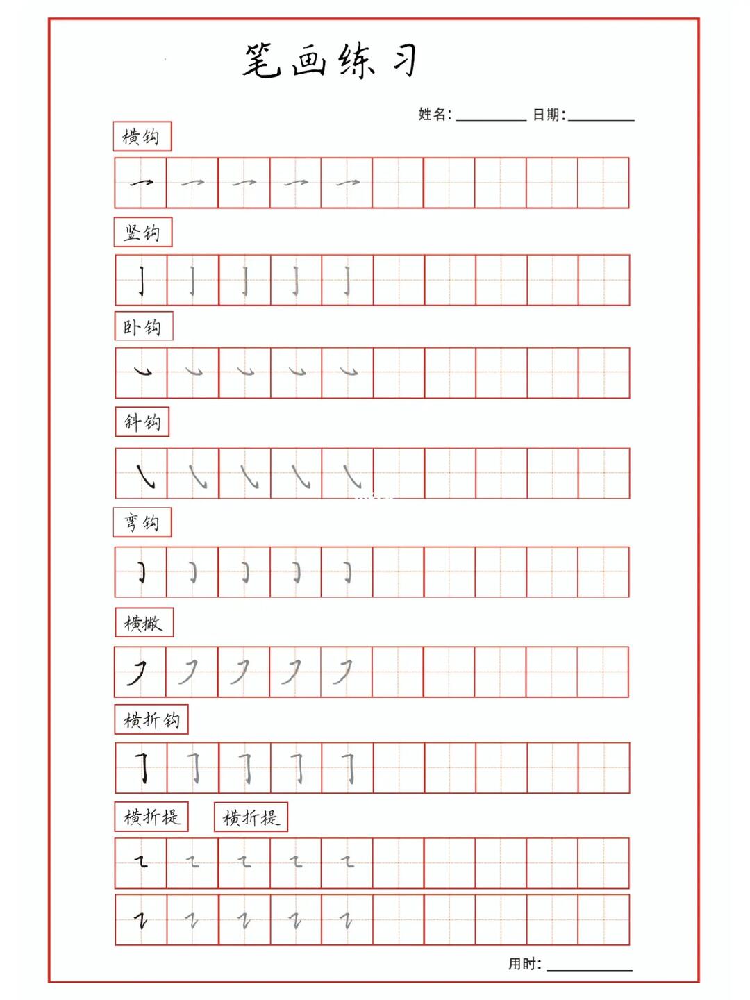 基本笔画是写一手好字的基础,快教孩子练起来吧,坚持练习就会有长进!