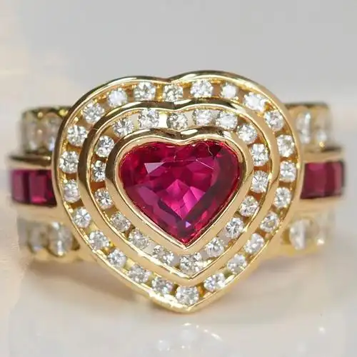 韩国日韩版饰品 欧美夸张复古红宝石 水晶爱心食指戒指女