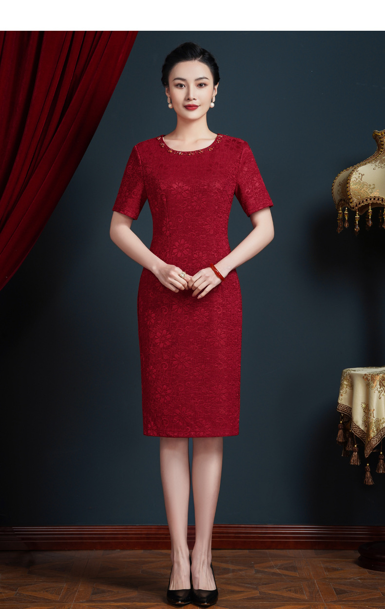 妈妈婚宴礼服春秋连衣裙洋气女红色喜婆婆婚宴装春装结婚气质高贵