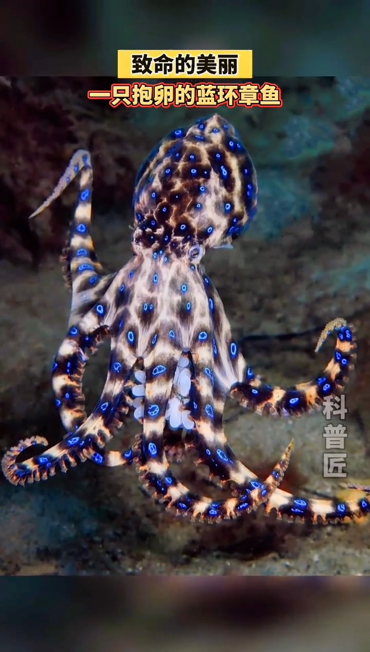 其中蓝环章鱼是一种很小的章鱼品种,其臂跨不超过厘米,大小仅有