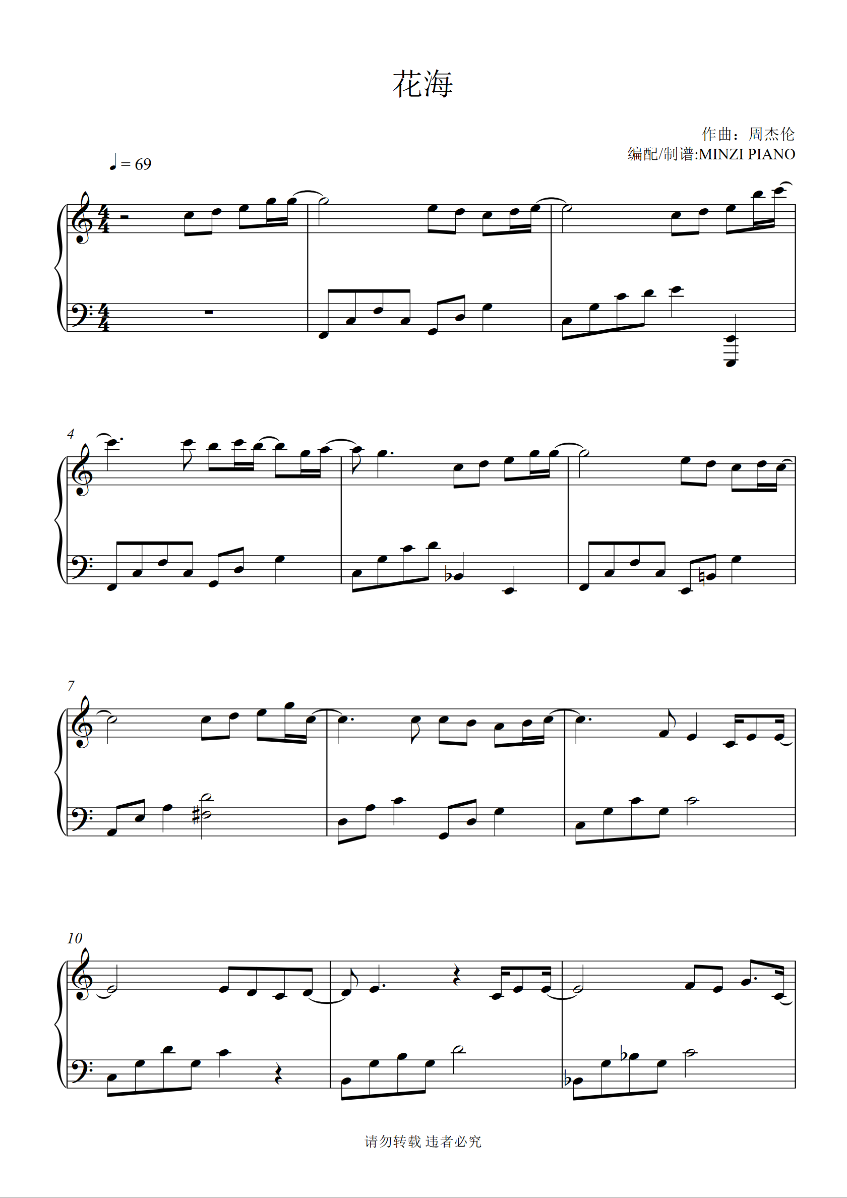 《花海》原版钢琴谱#钢琴 #五线谱 #钢琴谱 #周杰伦 - 抖音