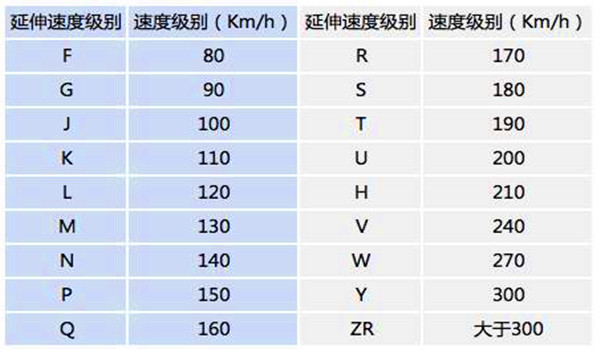 轮胎速度等级对应表