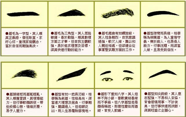 易学面相算命图解:眉形 眉毛面相图解