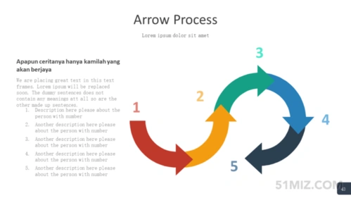 彩色16:9宽屏5项简洁ppt流程图拐弯箭头