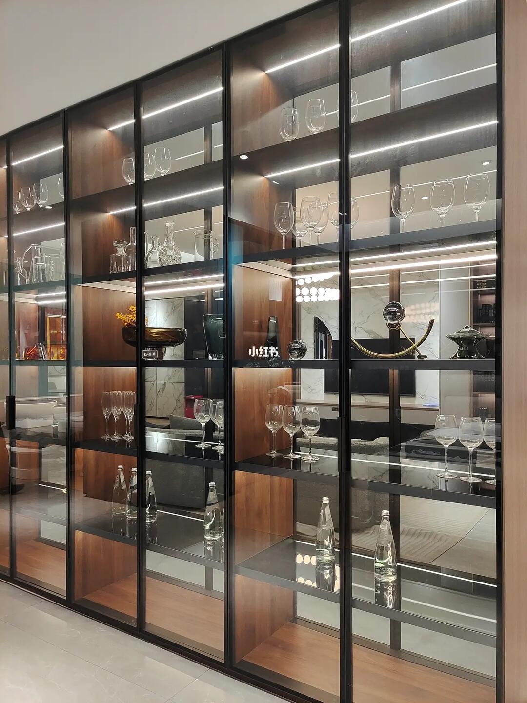轻奢酒柜现代简约家用客厅餐厅餐边柜玻璃酒柜透明展示柜一体靠墙